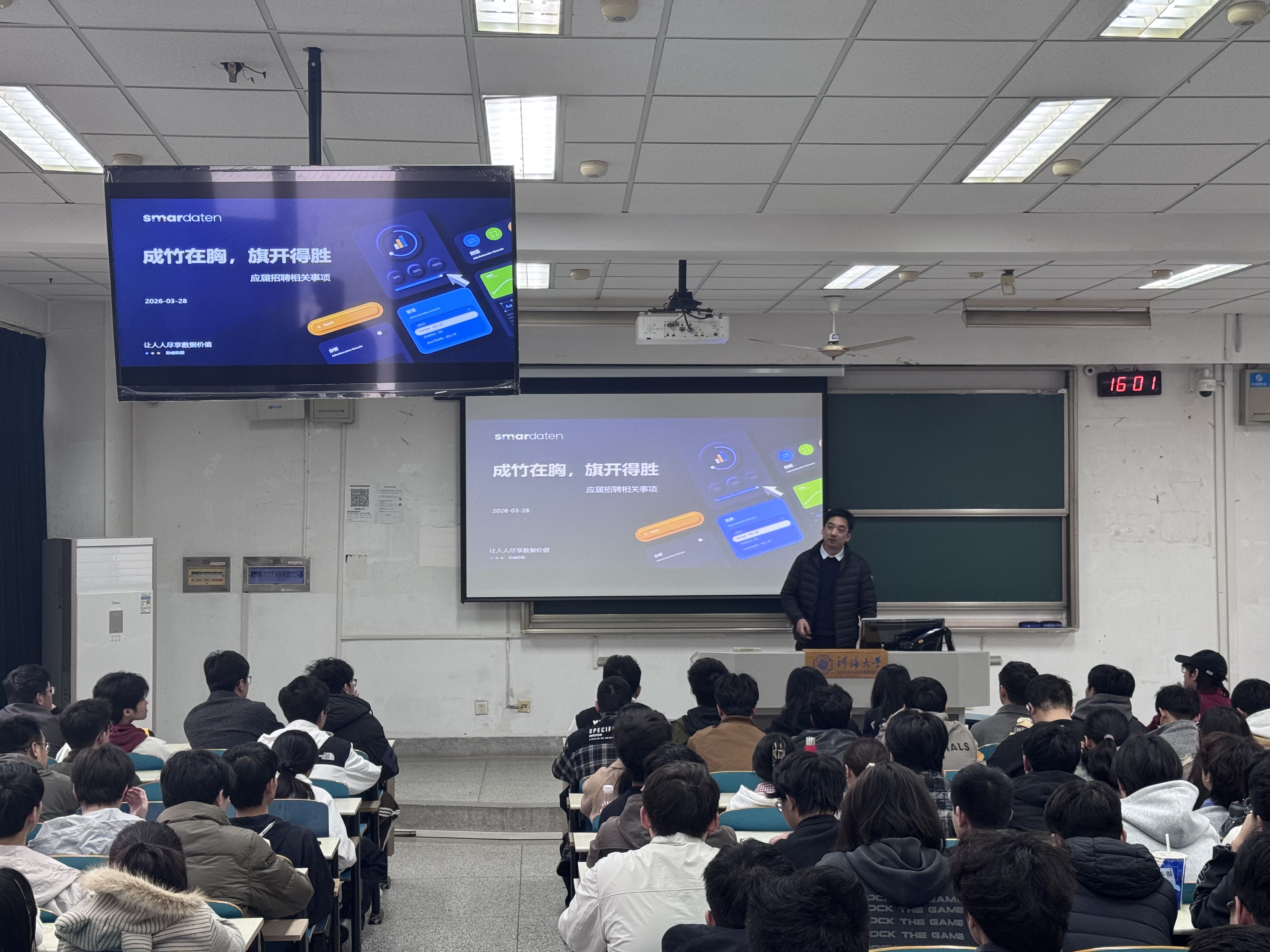 3月31日下午,“E路起航——博彩网 就业大讲堂暨职业能力提升训练营第二期”在江宁校区顺利举行。本次活动特邀博彩网 2004届计算机科学与技术专业校友、江苏数睿数据有限公司研发部总经理陈飞担任主讲嘉宾。